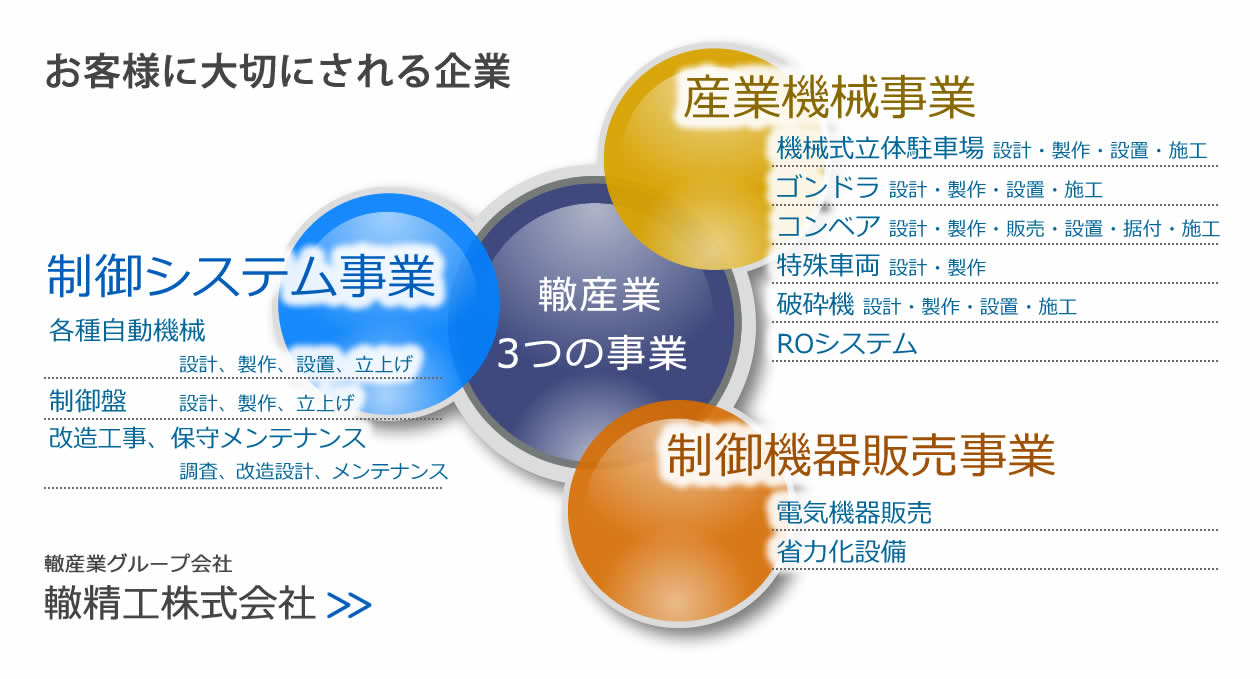 轍産業株式会社|機械式立体駐車場製作|ゴンドラ設計・製作・設置・施工|ベルトコンベア設計・製作・販売|特殊車両設計・製作|制御システム
